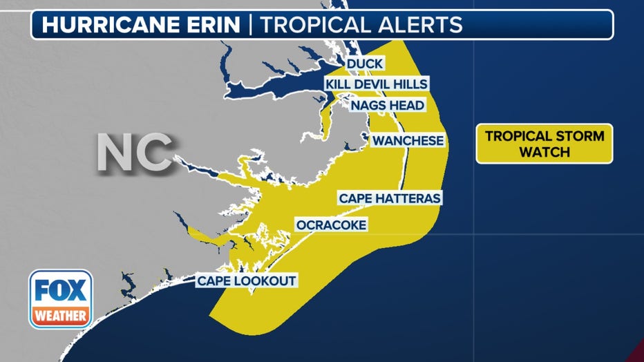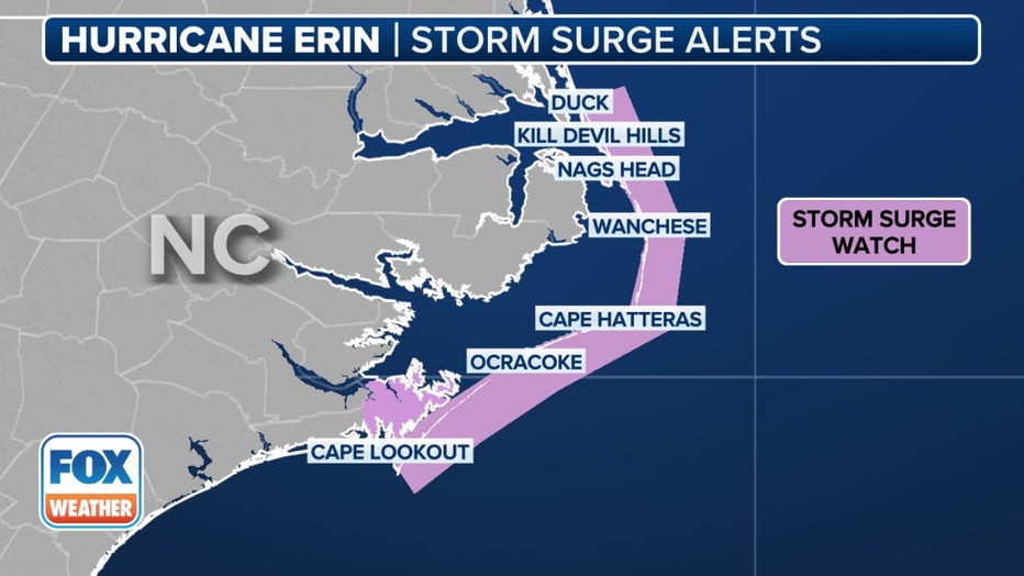 Storm surge alerts from Hurricane Erin.(FOX Weather)
