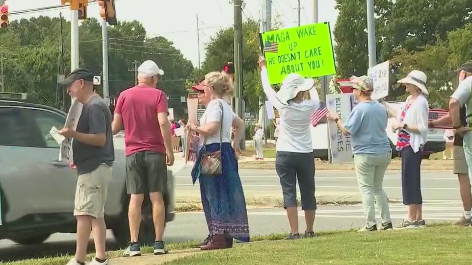 Indivisible Cobb held a rally on Labor Day to bring attention to "income inequality" and protest against billionaires reportedly allegedly running the country.