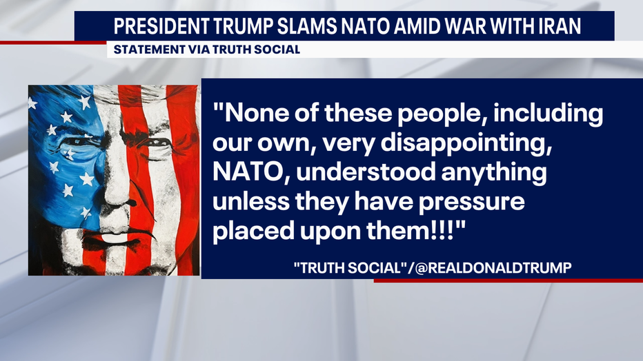 10:20 a.m. ET: President Trump took to Truth Social to criticize NATO as tensions with Iran continue. He's accused the alliance of being unhelpful throughout the conflict.
