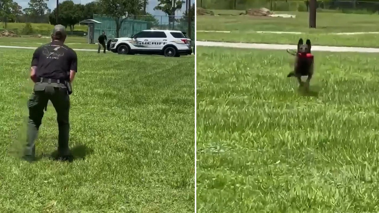 A police dog in St Lucie County, Florida, was a particularly good boy when he helped his handler with a gender reveal display.