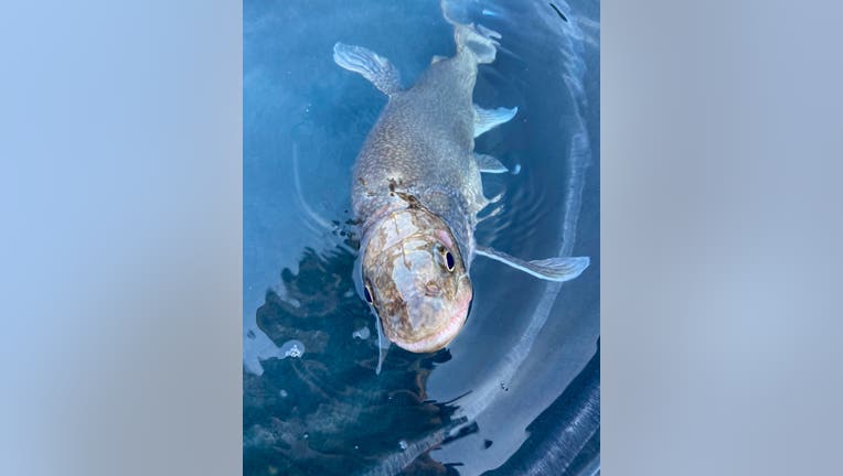The DNR said the fish was found in a remote offshore area near the Canadian border, 40 miles north of Grand Marais in Michigan's Upper Peninsula.