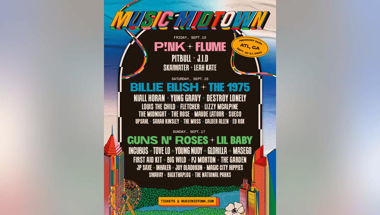 The 2023 edition of Music Midtown will feature performances by P!NK, Guns N’ Roses, Billie Eilish, Flume, The 1975 and Lil Baby, J.I.D, Pitbull, Incubus, Niall Horan, Tove Lo, and many more.