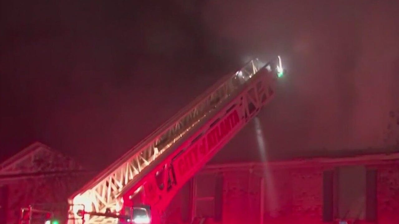 ATLANTA - A two-story apartment building caught fire overnight in southwest Atlanta.