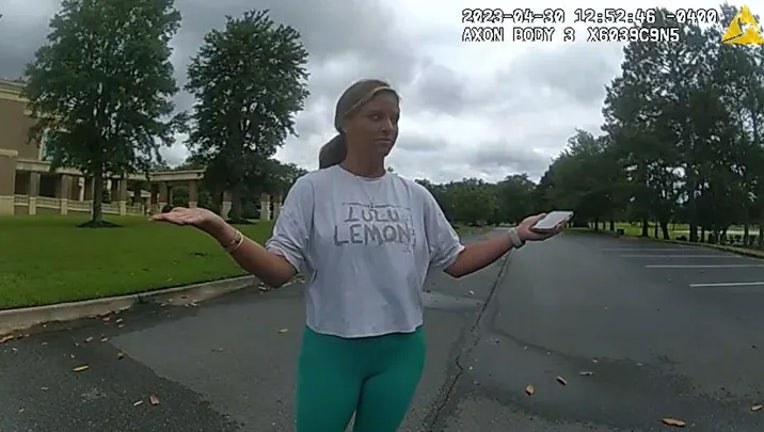 Lindsay Shiver, seen here in bodycam from April 30, 2023, called police because her estranged husband "was frolicking" around with their kids instead of bringing them home. (Thomas County Sheriff's Office)