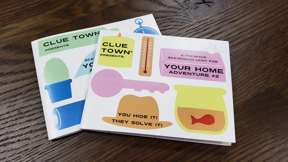 “I have two titles that you can solve in anyone’s house. It does require two people,” explains Carlson of his in-home hunts. “Basically, it’s a pre-made scavenger hunt, where one person will cut the pages out of the book and I’ll tell you on the page where to hide that page. And it uses places that are in anyone’s house, like the refrigerator, umbrella, shoe…things like that.”