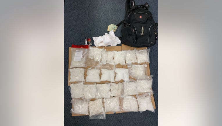 The agents opened his backpack and found several clear bags with a crystal-like substance inside, according to an arrest affidavit.