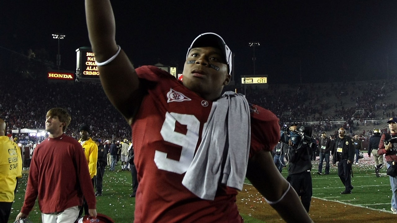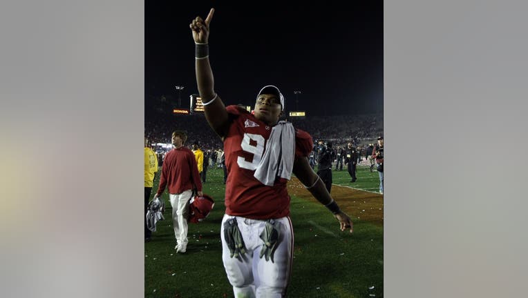Luther Davis #96 of the Alabama Crimson Tide celebrates after winning the Citi BCS National Championship game over the Texas Longhorns at the Rose Bowl on January 7, 2010 in Pasadena, California. (Photo by Stephen Dunn/Getty Images)