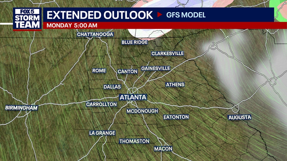 Cold, dry air tends to wring out any remaining moisture, so a few flurries could appear over the highest North Georgia peaks Monday. However, no accumulation or travel issues are expected. Only one long-range model hints at snow, and forecasters say that type of precipitation is not in the forecast.
