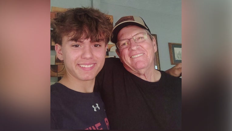 Conner Schoon and his grandfather John Carter Martin. Martin died in a crash involving an ambulance on March 15, 2026. Schoon remains hospitalized. (Credit: Jennifer Martinez)