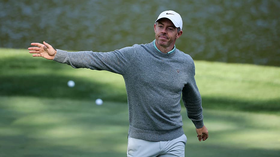 AUGUSTA, GEORGIA - APRIL 08: Rory McIlroy of Northern Ireland reacts on the ninth green during the Par Three Contest prior to the 2026 Masters Tournament at Augusta National Golf Club on April 08, 2026 in Augusta, Georgia. (Photo by Hector Vivas/Gett