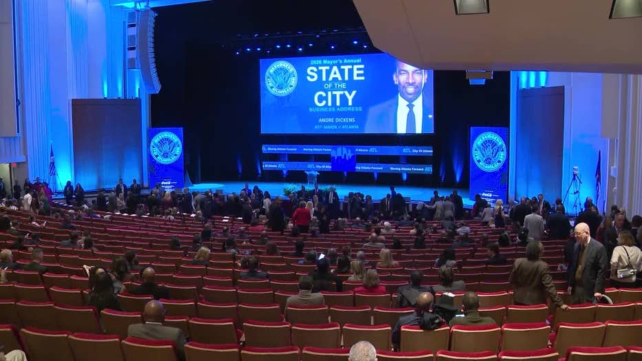 Mayor Andre Dickens gives his Atlanta State of the City address at the Woodruff Arts Center on March 18, 2026. (FOX 5 Atlanta)
