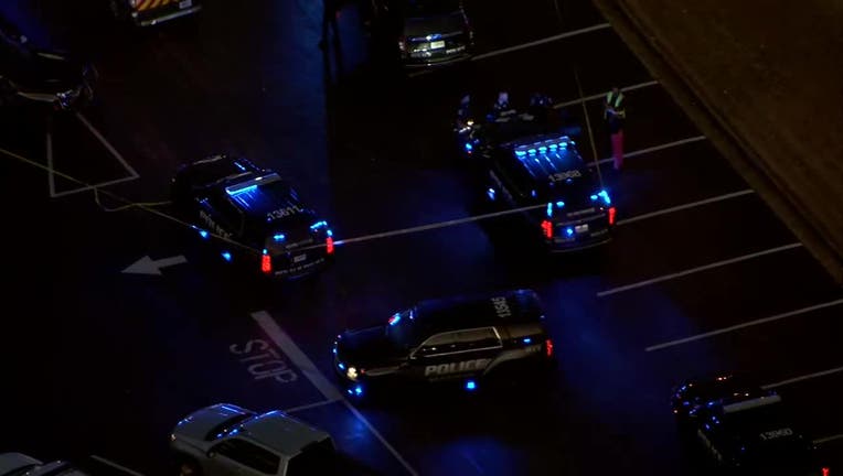 SKYFOX 5 flew over the scene shortly after 6 p.m., observing police and EMS personnel gathered around a white sheet in the parking lot. According to the DeKalb County Police Department, officers arrived to find a woman suffering from an apparent gunshot wound; medics pronounced her dead at the scene.