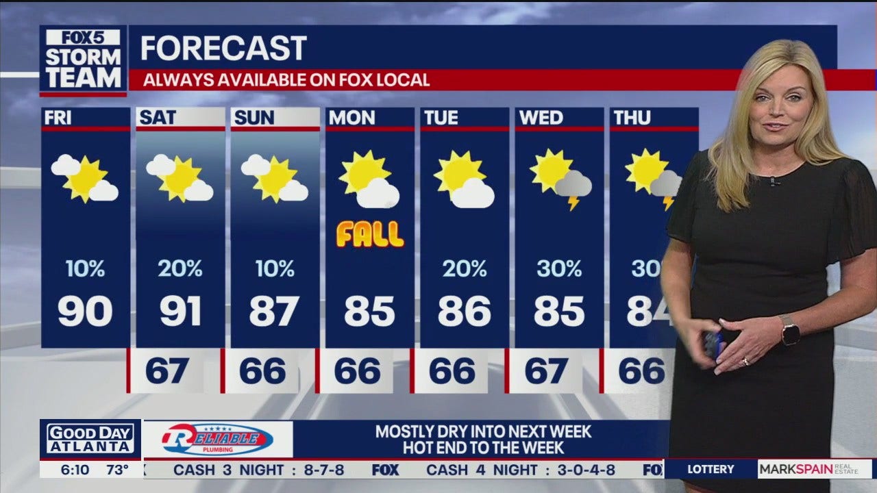 ATLANTA - Atlanta started Friday morning at 73 degrees, about four degrees warmer than the same time yesterday, with humidity levels still giving off a late-summer feel.