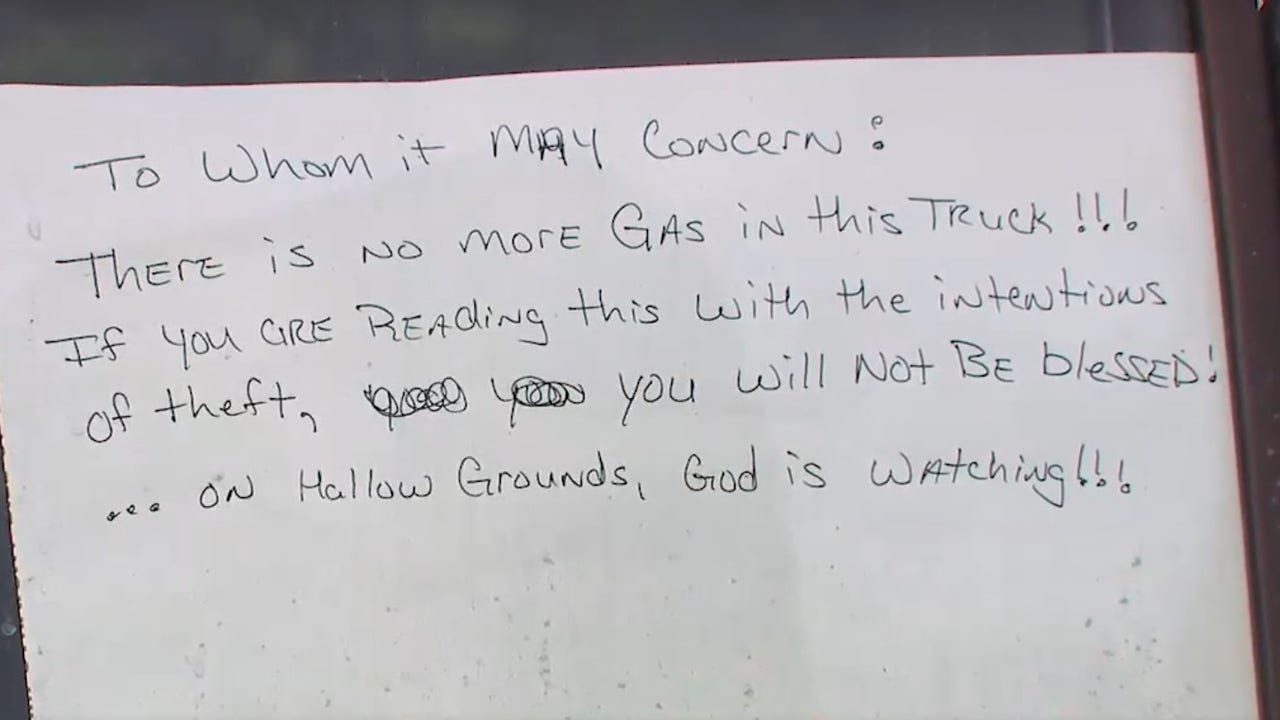 CONLEY, Ga. - A Metro Atlanta business owner is turning to faith and a firm message after thieves repeatedly siphoned gasoline from her commercial truck parked on church grounds.