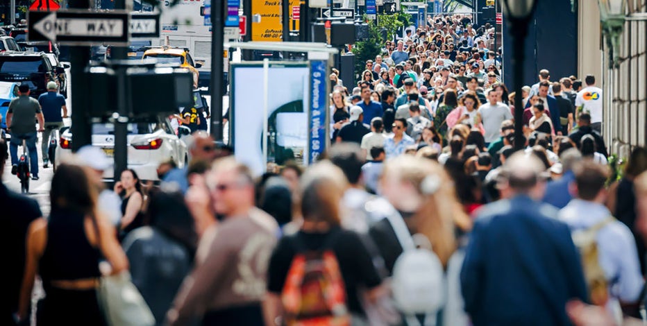 FILE - People walk on the sidewalk along Fifth Avenue on Sept. 16, 2023, in New York City. (Photo Thomas Trutschel/Photothek via Getty Images)