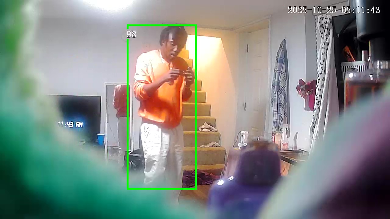 Video footage shows a man in an orange long-sleeved shirt and light-colored pants enter the victim's rented room. Police say he stole several personal items, including a television.