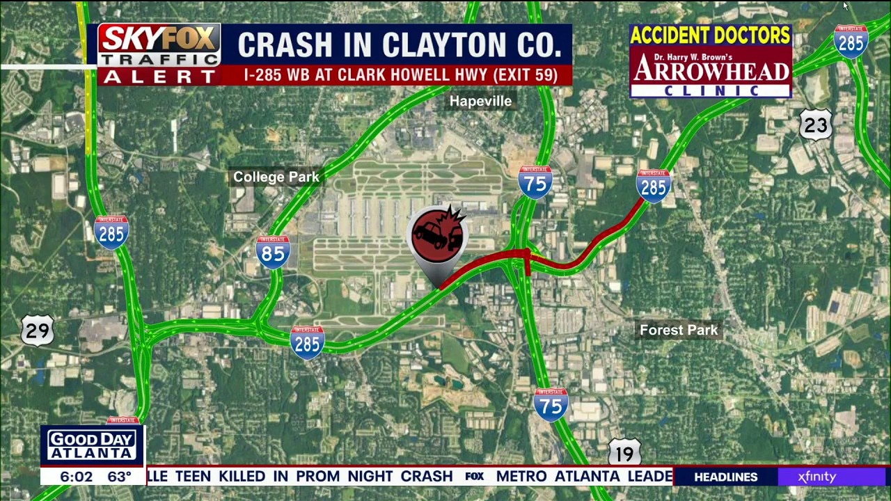 On the south side, a separate crash on Interstate 285 westbound at Clark Howell in Clayton County has all lanes blocked. Authorities report a person was involved in the crash, though the extent of injuries has not been confirmed. Traffic delays are quickly building, stretching back to Jonesboro Road. Drivers are advised to use Forest Parkway or Interstate 75 inside the perimeter as alternate routes.