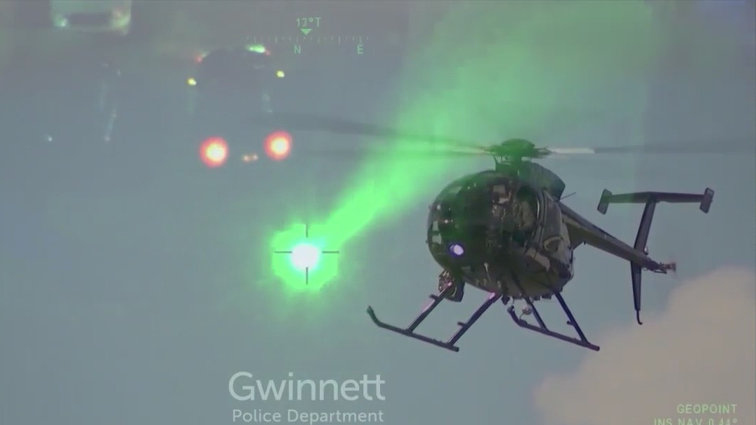 The Gwinnett County Police Department says last year a laser was pointed at its helicopters about 12 times, landing four people in jail.