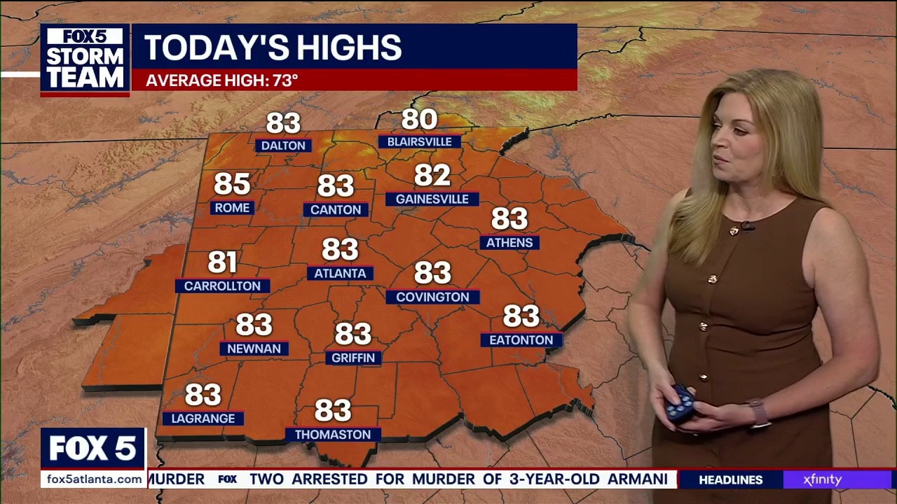 The FOX 5 Atlanta Storm Team says the biggest headline is the early-season heat, with temperatures climbing toward the upper 80s and even the potential for the first 90-degree day of the year — arriving nearly six weeks ahead of schedule.