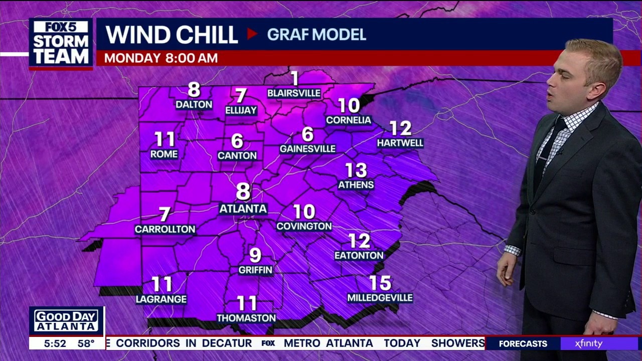 "The transition is remarkable," Forbes said. "We broke a record high temperature yesterday at 80°F, but it’s going to feel like 19°F in Blairsville by Sunday morning. Atlanta will be 26°F, Canton 23°F, and Gainesville 26°F."