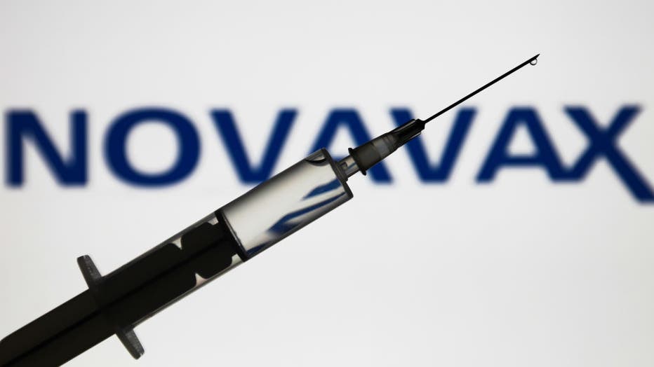 Medical syringe is seen with Novavax company logo displayed on a screen in the background in this illustration photo taken in Poland on November 16, 2020. (Photo by Jakub Porzycki/NurPhoto via Getty Images)