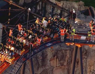 Six Flags officials say the Firebird roller coaster came to a “controlled stop at the top of the lift hill” at around 6:15 p.m.