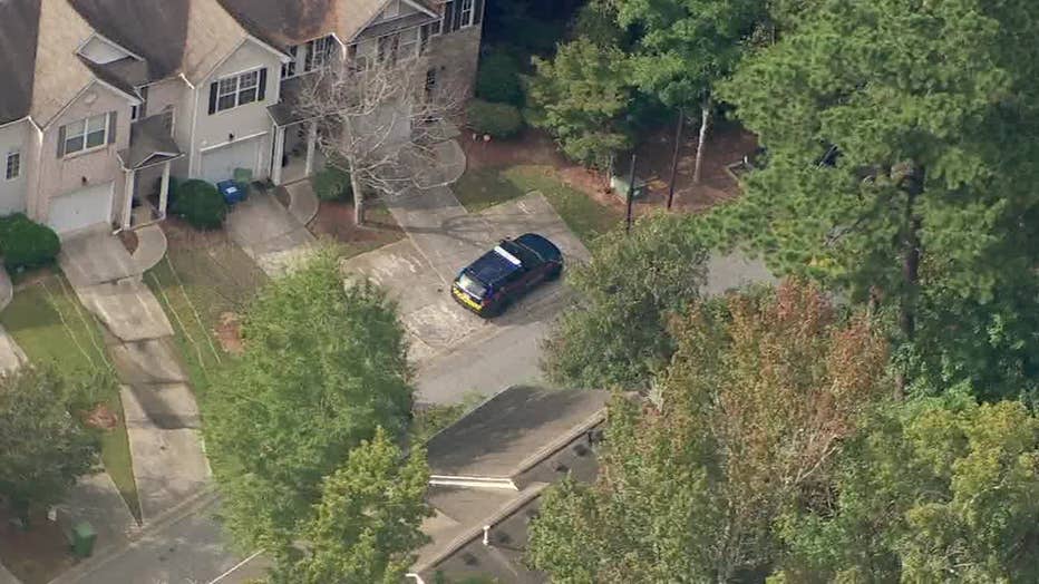 Officers investigate a shooting at 808 Celeste Lane in the Villages of Cascade apartments in southwest Atlanta on Oct. 7, 2025. (FOX 5)
