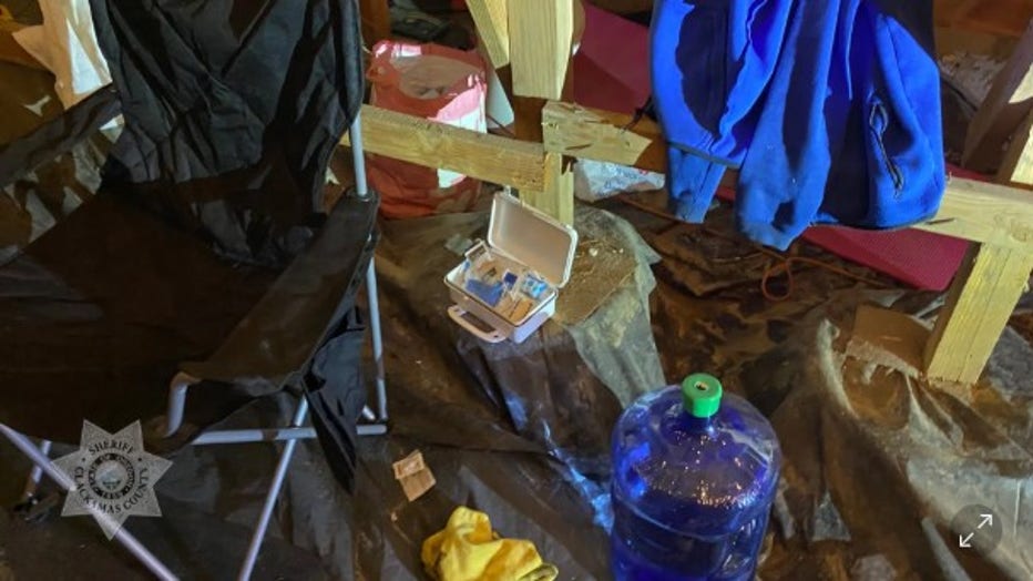 "He had taken significant steps to improve the conditions of the crawl space and was obviously living inside. Deputies observed a bed, lights, chargers, TVs, and other electronics plugged into the power of the house," the sheriff’s office said.