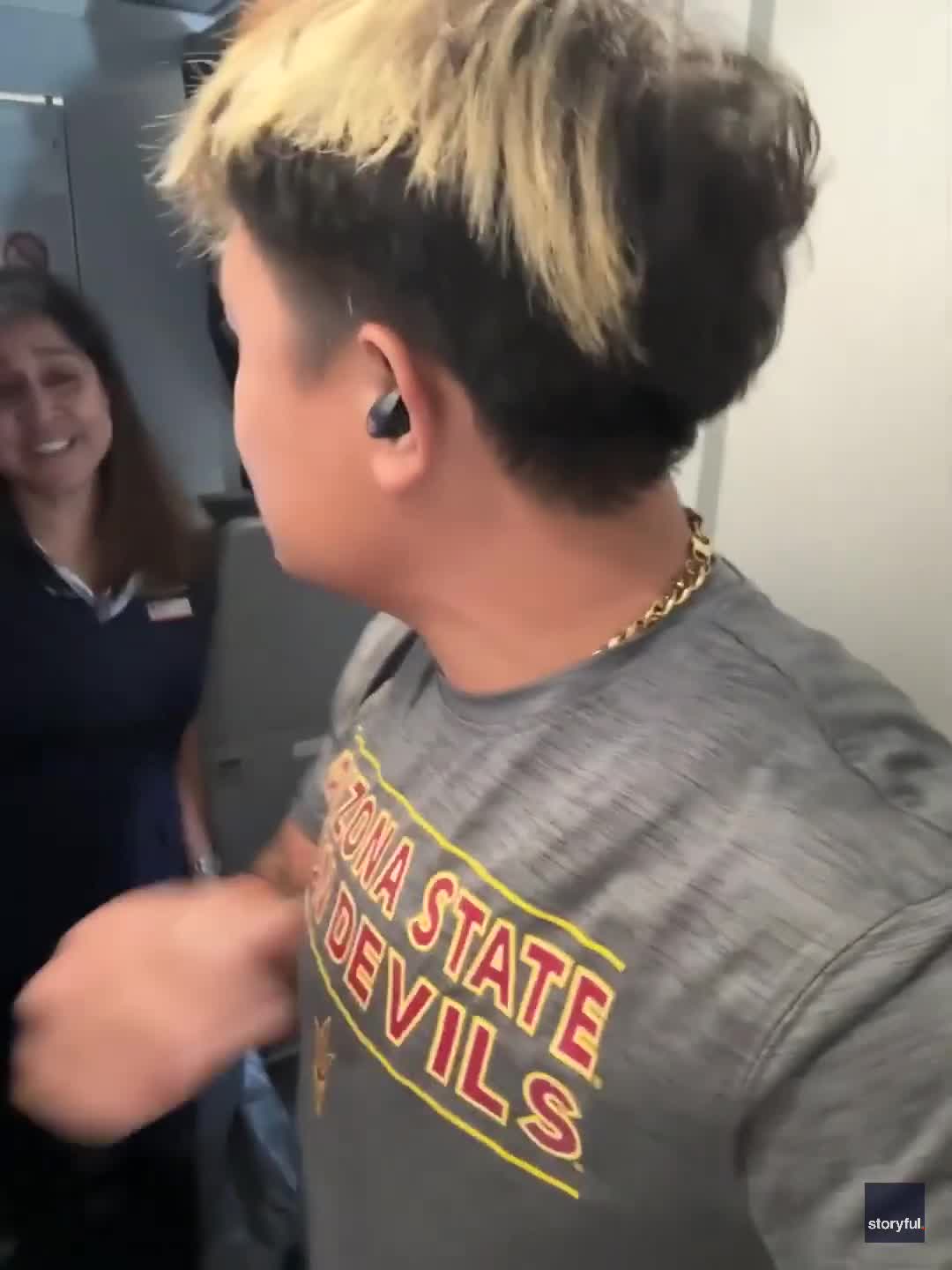 In the video, the flight attendant appears to reach for Nguyen’s phone when she realizes he is recording.