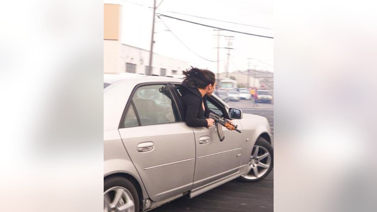 Passenger leans out of vehicle with an AK-47. Photo courtesy SFPD.