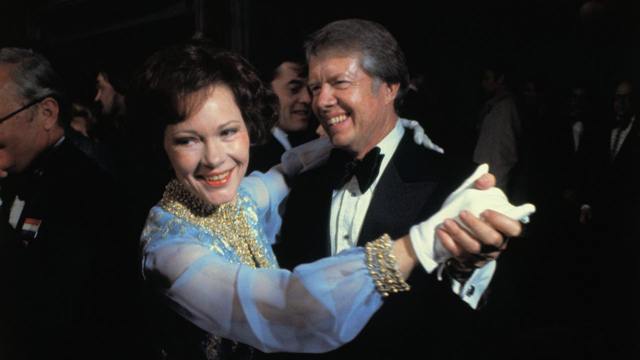 President Jimmy Carter and Rosalynn Carter step out on the dance floor at the Mayflower Hotel, the site of seven Inaugural Balls. (Getty Images)