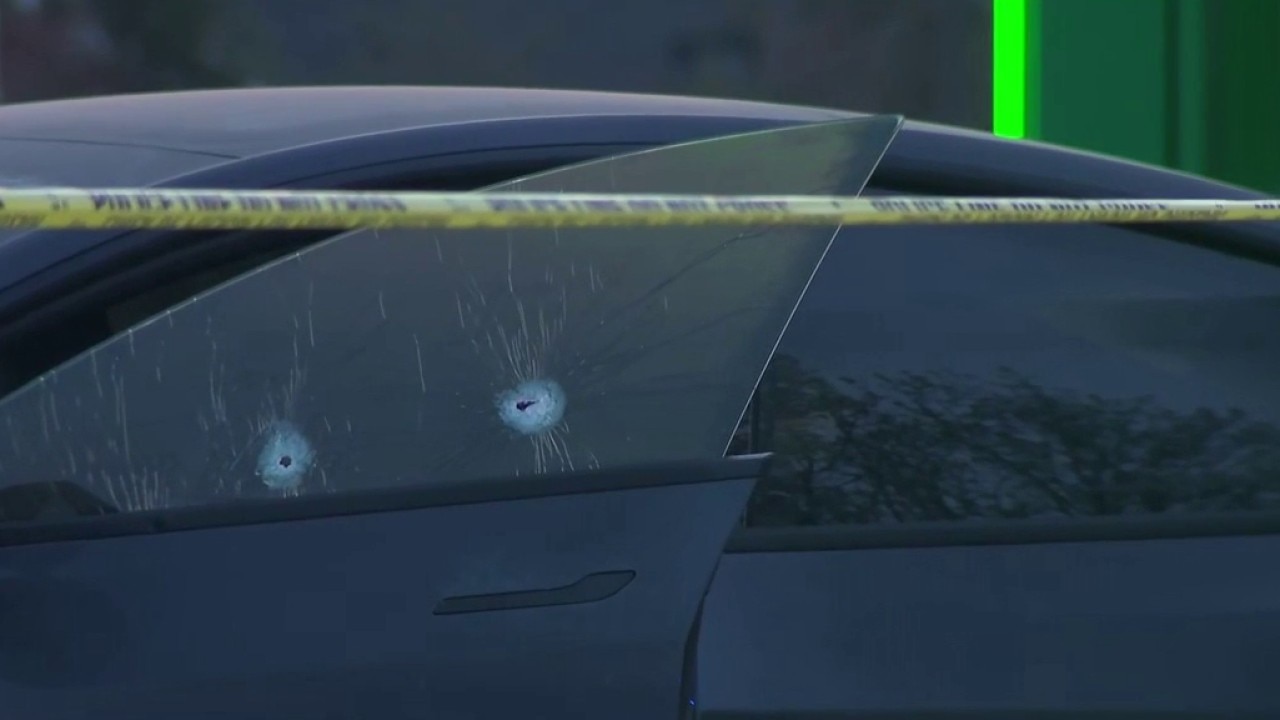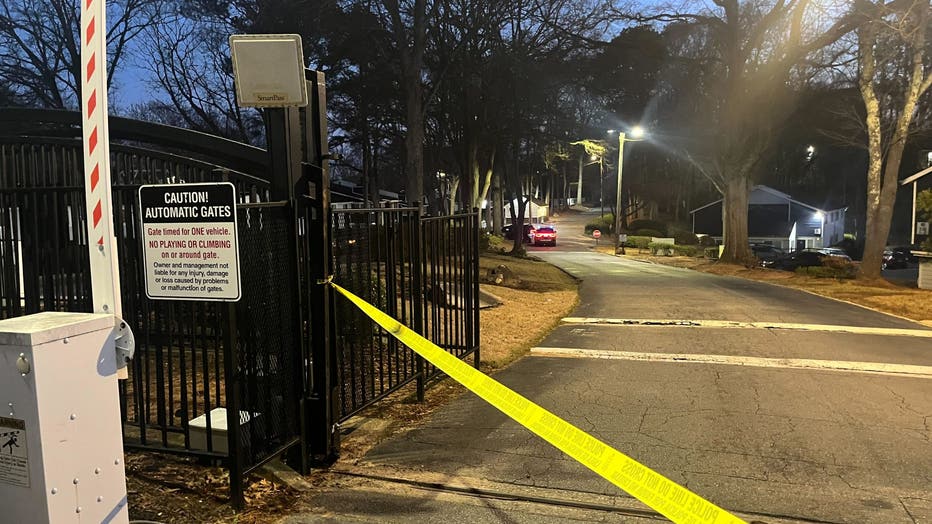 Officers discovered the victim's vehicle, a Tesla with multiple bullet holes visible in the driver-side window, stopped in a turn lane at the intersection of Collier Road and DeFoors Ferry Road.