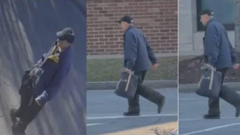 Authorities describe the person of interest in the shooting as a white or Hispanic man last seen wearing a black hat, a blue jacket, dark pants and carrying a black tote bag with tan straps.