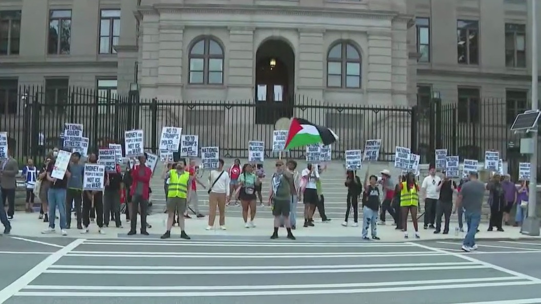A protest took place on Thursday in front of Gov. Kemp's office in Atlanta over the mobilization of the National Guard to assist in ICE operations.