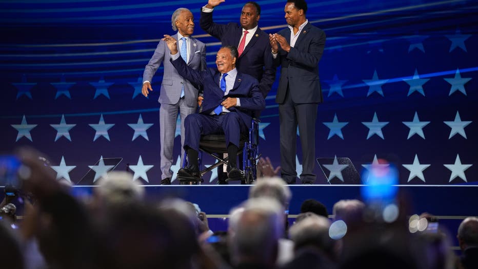 Rev. Al Sharpton and Rev. Jesse Jackson appear onstage during the first day of the Democratic National Convention at the United Center on August 19, 2024, in Chicago, Illinois.