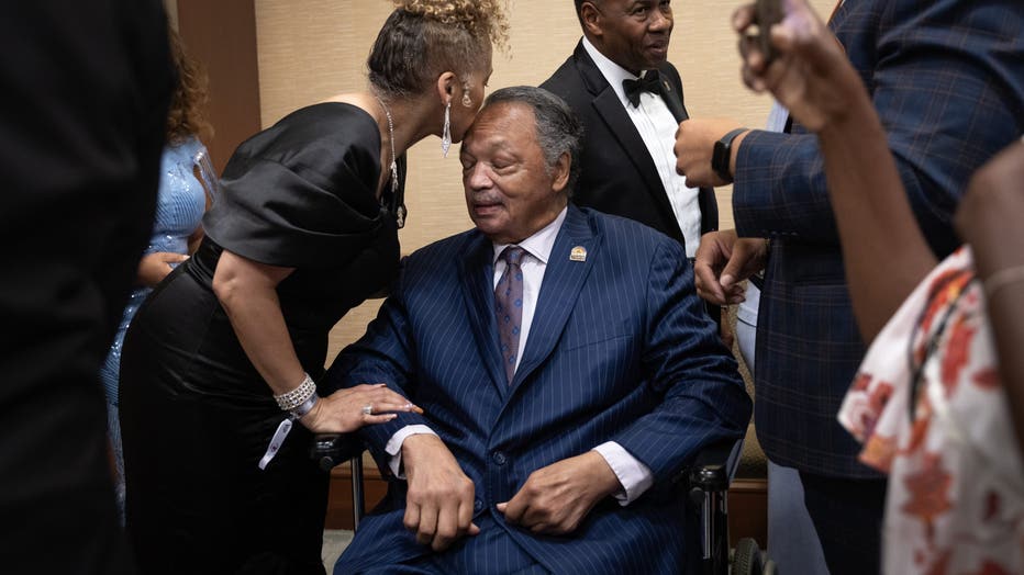 The Rev. Jesse Jackson visits with guests at the National Bar Association's annual convention on July 31, 2025, in Chicago, Illinois. The National Bar Association is the nation's oldest and largest network of predominately black legal professionals.