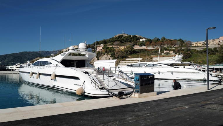 This photograph shows a yacht moored in Cala del Forte, the new marina of Monaco. (Photo by VALERY HACHE/AFP via Getty Images)