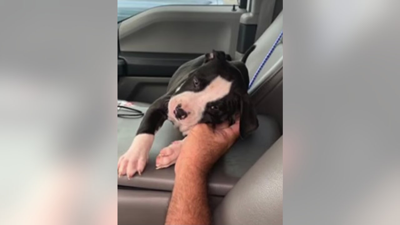 Sheriff Ivey says the puppy was crying in pain, in serious medical condition, and was ‘near death’ while inside the hot vehicle.