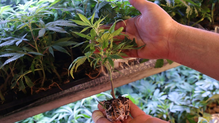 FILE-A person holds a high-THC-content cannabis plant at an exhibitor's stand at a cannabis shop. (Photo by Sean Gallup/Getty Images)