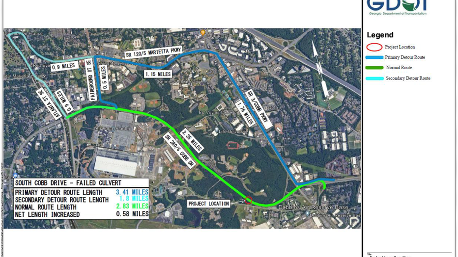All other motorists will be diverted around the road closures for the next 8 weeks. General motorists should use the detour route, "which is going to be Cobb Parkway, Marietta Parkway and Atlanta Road to get either up and around or over this closure for the time being," Dale explained.