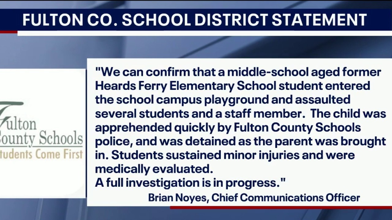 SANDY SPRINGS, Ga. - Authorities are investigating an assault at Heards Ferry Elementary School on Powers Ferry Road in Sandy Springs after a former student entered the campus playground Wednesday morning and attacked several students and a staff member.