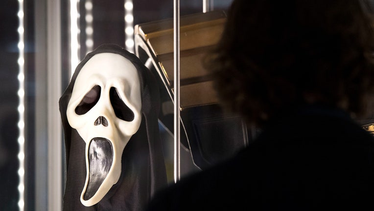 A Ghostface mask used in Scream (1996) at the Prop Store film memorabilia exhibition at the BFI IMAX at Waterloo in central London. (Photo by Victoria Jones/PA Images via Getty Images)