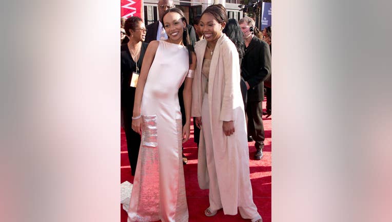 US singers Brandy and Monica arrive at the 41st Annual Grammy Awards at the Shrine Auditorium in Los Angeles, 24 February. They won the award for Best Rhythm and Blues Performance with Vocal for 'The Boy Is Mine' (ELECTRONIC) AFP PHOTO/Vince BUCCI (P