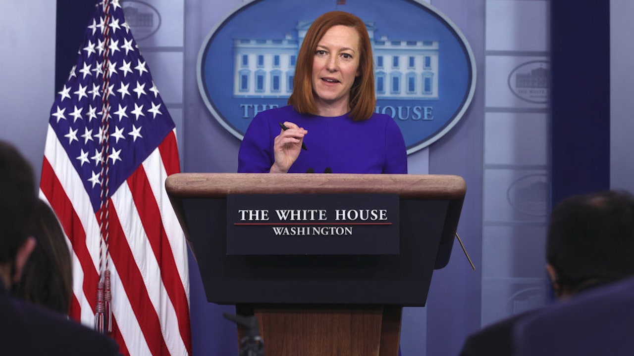 FILE - White House press secretary Jen Psaki speaks during a daily press briefing at the James Brady Press Briefing Room of the White House March 9, 2021 in Washington, DC.