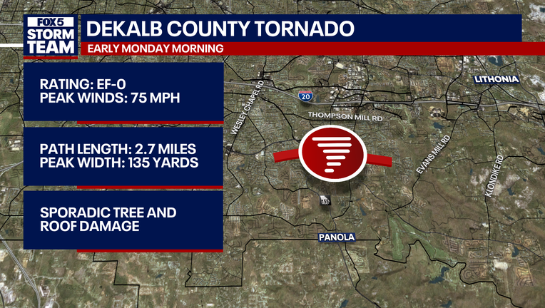 DEKALB COUNTY, Ga. - A tornado packing 75 mph winds touched down in DeKalb County during severe weather this week, trapping a teen inside his home and narrowly missing another resident in bed, the National Weather Service confirmed on Tuesday.