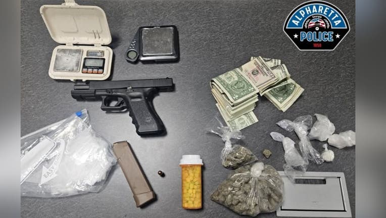 ALPHARETTA, Ga. - A routine traffic stop in Alpharetta led to a major arrest involving drugs, weapons and outstanding felony warrants, according to police.