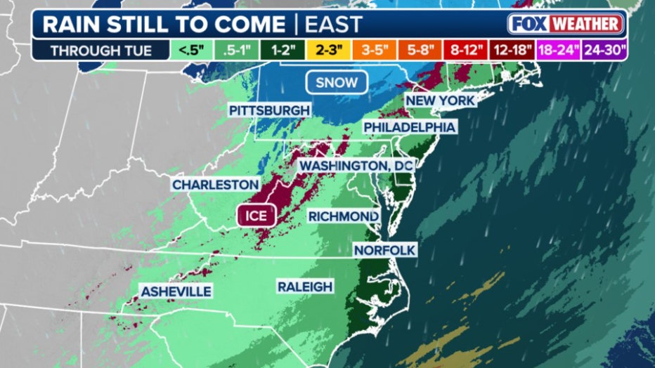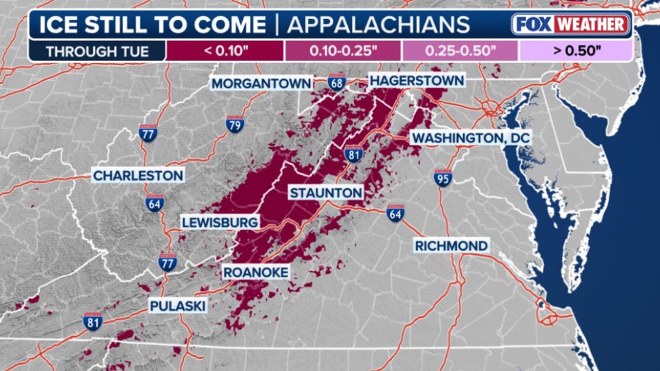 Expected ice accumulation. (FOX Weather)