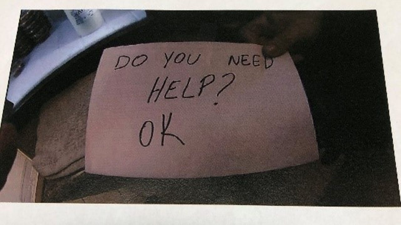 She said she wrote, "Do you need help? Ok" and stood behind his parents where they couldn't see. After several attempts, Carvalho said that he signaled yes. Police were immediately called.
