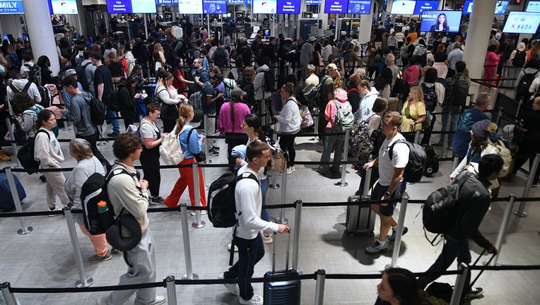 Travelers move through a TSA security screening line at Orlando International Airport on the day before Thanksgiving in Orlando.(Photo by Paul Hennesy/Anadolu via Getty Images)