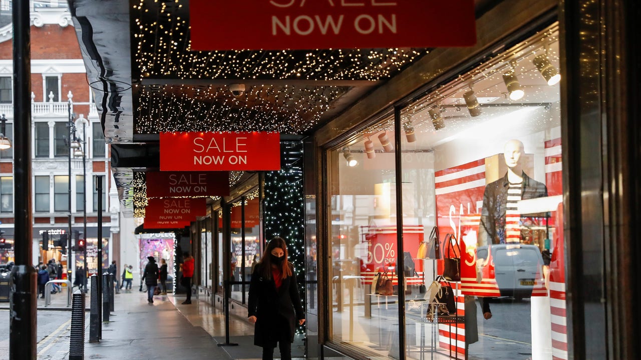 A woman wearing a face mask walks past John Lewis on Oxford Street in London, United Kingdom, on Dec. 18, 2020. (Photo by Han Yan/Xinhua via Getty)